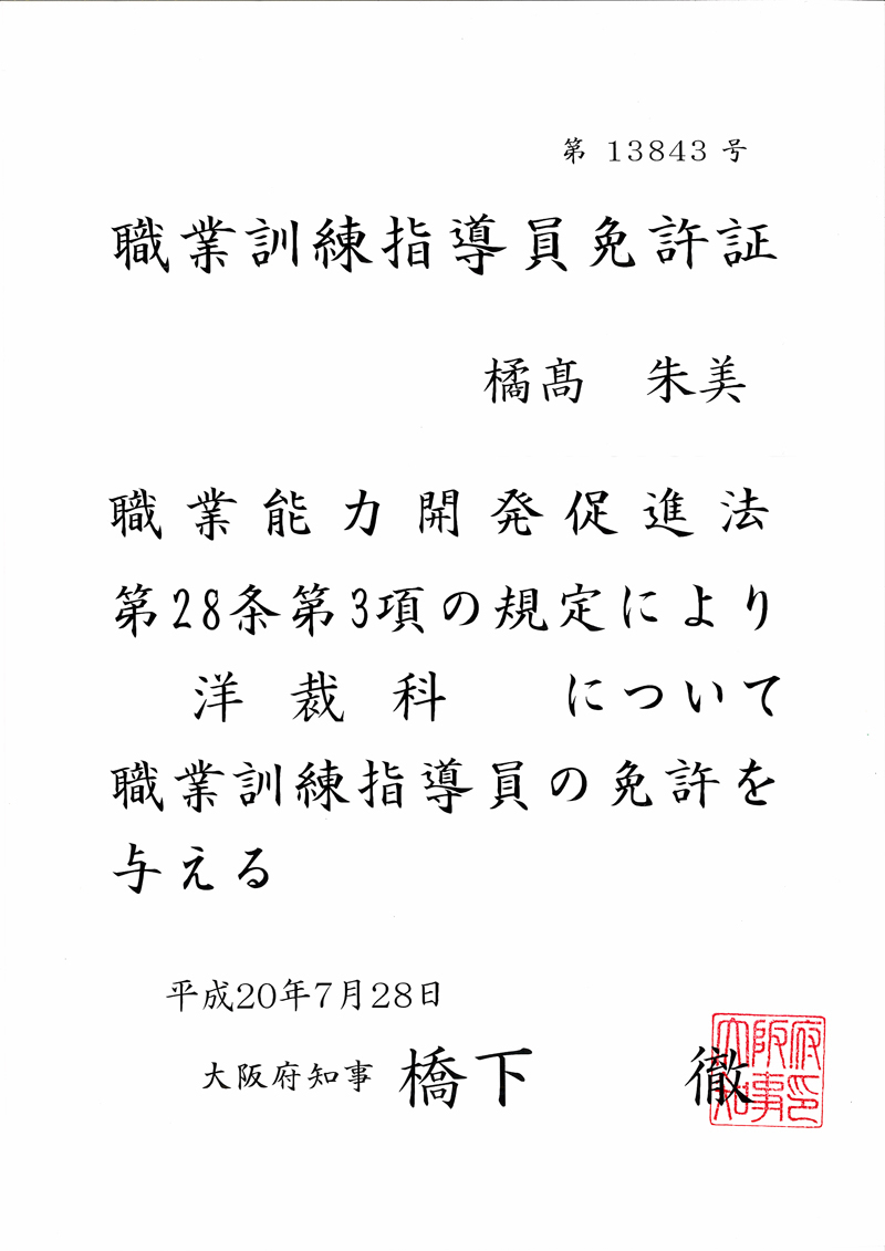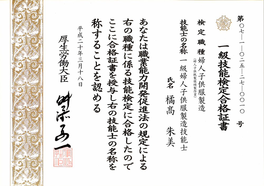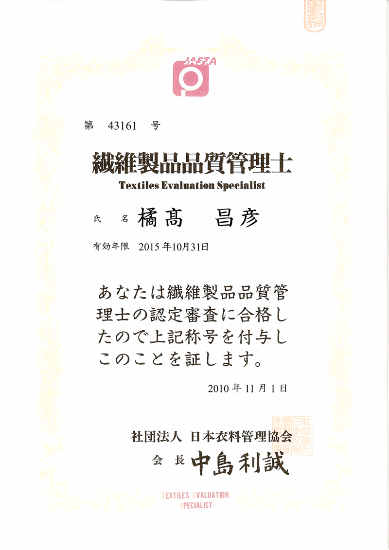 繊維製品品質管理士 [TES](日本衣料管理協会認定)
